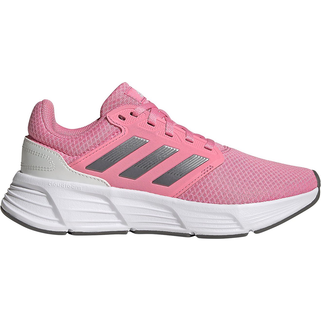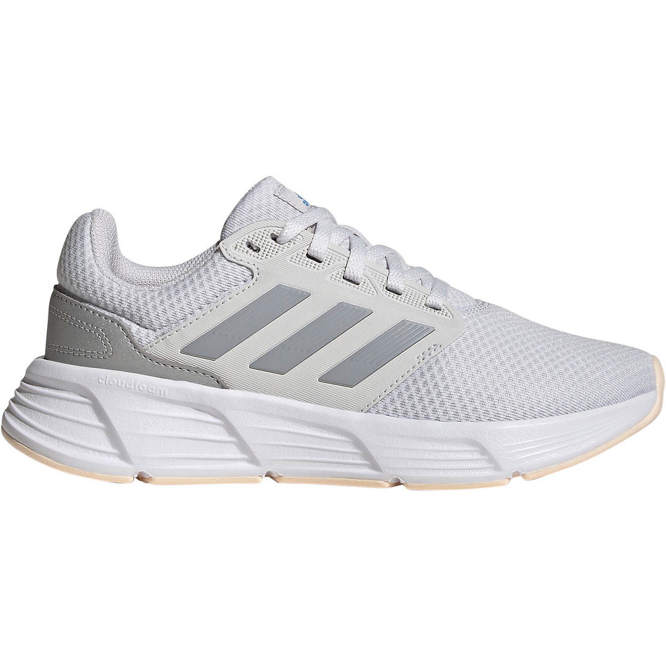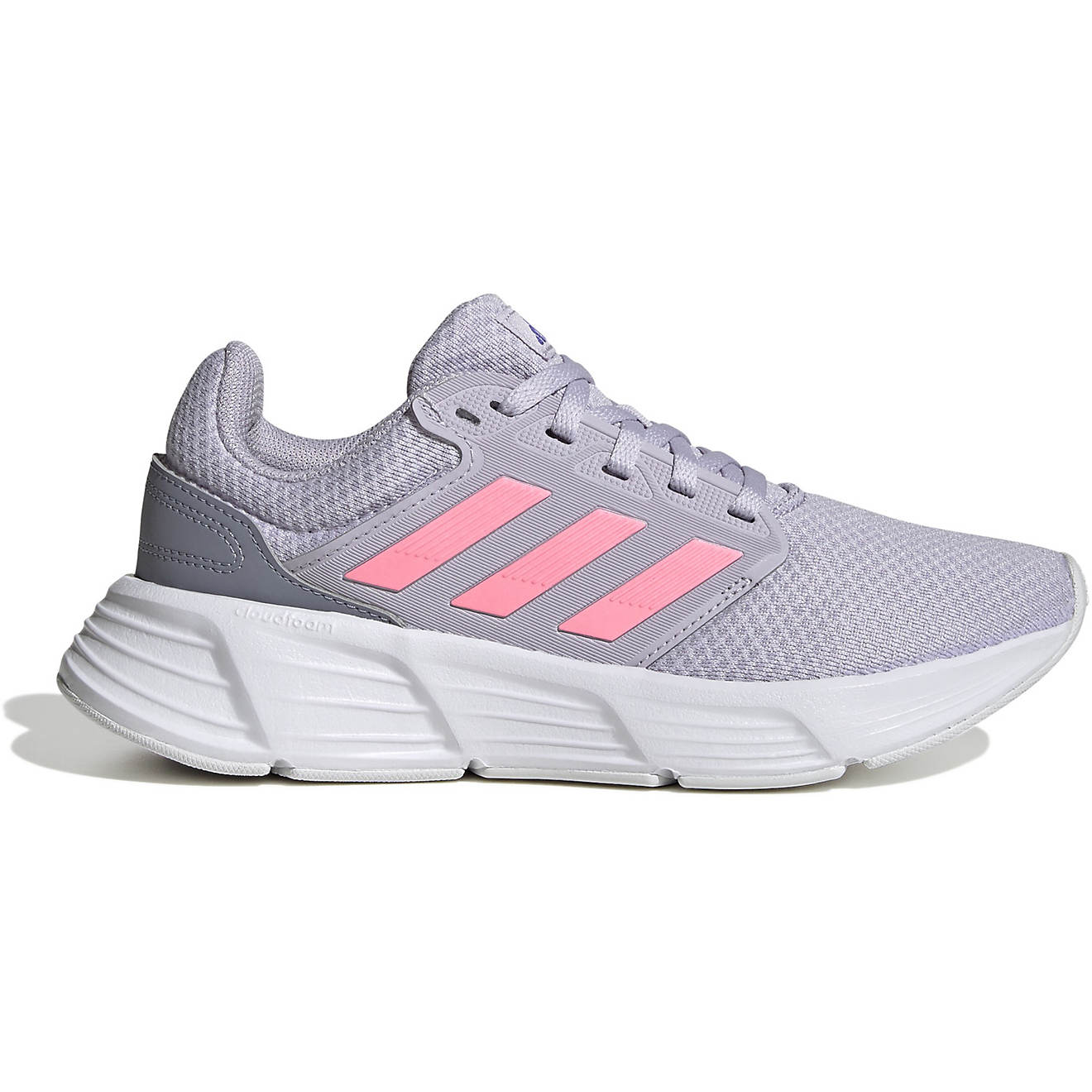 Stay ready to take on the miles in the adidtheas Women's Galaxy 6 Running Shoes. The textile and synthetic material uppers provide a soft, lightweight fit and feel. The Ortholite sockliners with antimicrobial properties help keep your feet fresh and comfortable. The CLOUDFOAM innersoles provide plush, supportive cushioning, while the molded 3-Stripes details, debossed adidtheas heel logos and woven tongue labels add classic brand style to your look.